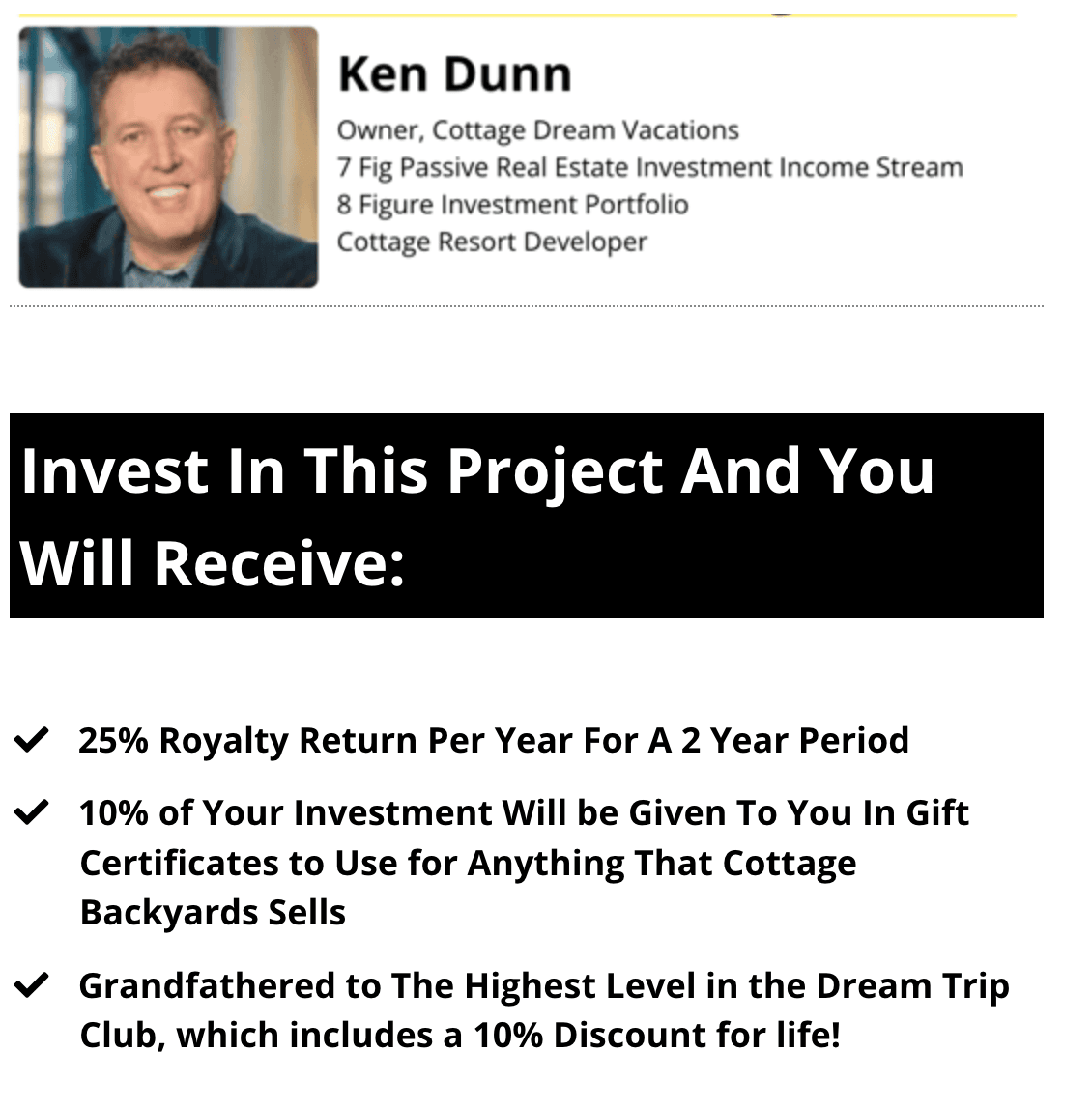 • ​10% of Your Investment Will be Given To You In Gift Certificates to Use for Anything That Cottage Backyards Sells